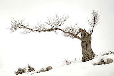 Una foto che mi regala una bella sensazione ogni volta che la guardo è quella di un albero isolato scattata in inverno sul Monte Semprevisa, la vetta più alta della provincia di Latina. Era una foto che cercavo da tempo come composizione. Quel giorno era tutto lattiginoso e così, sovresponendo leggermente il tronco sono riuscito a rendere il pattern della foto tutto uniformemente bianco. In più ci si è messo anche l’albero che rievoca, secondo me, i tronchi animati del Signore degli Anelli, saga a cui sono particolarmente legato.